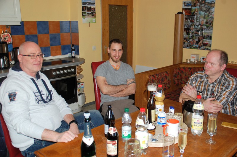 Freitag bin ich dann gleich nach der Arbeit zur Ranch gefahren, Daniel aus der Vordereifel war dann auch der erste, der ohne Stau angekommen ist. Später dann noch Alain und Katarina aus Luxemburg, so daß wir in kleiner Runde in der Küche saßen. Am Abend sind wir dann nach Weiden zum Italiener, wo noch Holger und Carola zu uns gestoßen sind und wir uns leckere Pizza und Pasta schmecken haben lassen. Zurück auf der Ranch sind wir dann noch bis Mitternacht gemütlich zusammen gesessen.