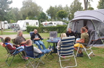 Irgendwann nach über 5 Stunden für die nicht ganz 300 km sind wir dann aber am Ziel, beziehen unsere Stellplätze. Sehr schön gelegen, haben wir uns den Stellplatz in der ersten Reihe schon letztes Jahr ausgesucht. Das Wetter ist gnädig, der Regen macht während des Aufbauens eine kurze Pause, um dann in einen Schauer überzugehen, der die nächsten zweieinhalb Tage andauert! Die Aussichten verheißen nichts gutes, wir haben uns wohl das falsche Eck Deutschlands ausgesucht! Wir wollen uns die Urlaubs-Laune nicht verderben lassen, trinken einen Kaffee im Vorzelt und beschließen, abend im Campingplatzeigenen Restaurant essen zu gehen. Es schüttet wie aus Kübeln, ein Test für Wohnwagen, Vorzelt und die Laune! Der Regen prasselt so auf den Wohnwagen, daß ich für Ohrstöpsel entscheide – eine gute Entscheidung, das geschlossene Vorzelt mitgenommen zu haben!