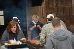 Gegen Spätnachmittag heizen wir den Grill an, Norbert hat das vorbestellte Fleisch mitgebracht. Sehr lecker, dazu Salate, Semmeln und Brot, es ist genug für alle da. Hubert schaut mit seinem neuen Hilux vorbei, von den Stoapfälzern sind mittlerweile auch fast alle da. Das Wetter hält, auch nach dem Essen können wir gemütlich in großer Runde und langer Tafel draußen sitzen. Als es abend kühler wird, kann man auch ans Feuer wechseln! So wird es ein angenehmer Abend in netter Runde, und es wird mal wieder spät.