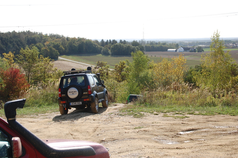 Gegenüber vom Camp liegt das Offroadgelände. Als Beifahrer von Milena sind wir dann rübergefahren, haben gezahlt und uns ein Bild vom Gelände gemacht. Das ist zwar relativ klein, aber fein! Eigentlich alles da, was sich Offroaders Herz so wünscht: Steilauffahrten, Verschränkungen und auch Schlamm. Der Rest ist Sand und Steine. Für unsere Milena war es die erste Geländefahrt, und die meisterte sie echt gut! Das einzige, was ihrem Delta-Amarok fehlt, ist eine Untersetzung, so daß er sich bei Steilauffahrten etwas schwer tut. Auch Dave scheuchte seinen Galloper ins Gelände, für den alten Hyundai auch eine Premiere, denn außer einem Feldweg hat er die letzten 20 Jahre noch kein Gelände gesehen! Tobi gab seinem Jimny die Sporen, der Würfel tut sich natürlich leicht in verworfenem Gelände. Das Wetter zeigte sich auch von seiner besten Seite, Sonne pur!