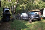 Also sind wir am 29. September um 8 Uhr im kleinen Konvoi von der Ranch aus aufgebrochen. Milena mit dem Amarok, Jürgen mit dem Navara, Dave und Celina mit dem Galloper und ich mit dem Ranger. Ohne Stau haben wir dann um halb 10 den Offroadpark erreicht und uns erst mal einen Kaffee gemacht. Ingo und Isabell, Werner und einige andere sind schon am Vortag angereist, so schauten wir uns erst mal etwas um. Einige Pickups und Suzukis waren da, das Camp sehr schön im Wald gelegen unter schattigen Bäumen. Norbert begrüßte uns auch gleich, mit ihm hatten ich schon über FB Kontakt.