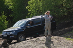 Der Freitag startet mit – welch Wunder – Sonnenschein! Perfekt, um noch mal einen Tag im Gelände zu verbringen! Wir finden immer neue Strecken, ich glaube, bis man alle mal abgefahren hat, ist man sehr, sehr lange unterwegs! Und natürlich sind auch nicht alle Passagen Pickup-geeignet. Ein paar Steilhänge bringen uns die Erkenntnis, daß man mit einer 100%-Sperre einfach leichter über Hindernisse kommt, die ohne doch Probleme machen. Walter ist dann der nächste, der sein Kennzeichen in den Fluten verliert, aber auch das wird mit Hilfe von Dave und Daniel wiedergefunden. Der Rest macht sein vorderes Kennzeichen einfach sicherheitshalber mal ab… Sören gibt seinem Hilux die Sporen und fliegt durchs Gelände, wenn das mal kein Beweis ist für die Haltbarkeit dieses Pickups! Gegen Abend sind dann alle da, mit 20 Fahrzeugen ist unser Camp gut gefüllt. Interessant auch die Gespräche um 3 Uhr nachts mit etlichem Alkohol, die neben unserem Schlafgemach geführt werden – da müssen wir am nächsten Tag doch noch einige unbeantwortete Fragen klären… J