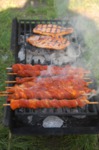 Langsam füllt sich unser Camp, die meisten reisen im Laufe des Donnerstags an. Platz ist genug da für alle, egal, ob Dachzelt, Wohnwagen oder Bodenzelt. Abend wird gegrillt und gemütlich zusammengesessen. Zu erzählen gibt es immer was, man plant neue Touren, Urlaube, die meisten kennen sich ja mittlerweile seit einigen Jahren. Und die, die das erste mal dabei, werden herzlich aufgenommen.