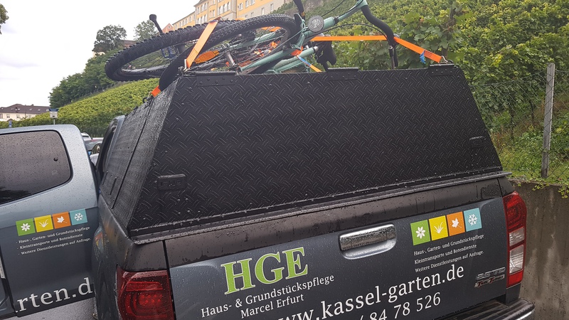 Über Regensburg und München fahren wir über Ravensburg und kommen am Nachmittag am Wirthshof-Campingplatz an. Da noch Mittagspause ist, haben wir Zeit, unseren Stellplatz mal anzuschauen. Etwas früher öffnet die Schranke, wir können unseren reservierten Stellplatz beziehen und bauen auf. Danach haben wir genug Zeit, den schönen Nachmittag zu genießen. Durch Zufall hat sich ergeben, daß ein junges Pickup-Pärchen, der Marcel und die Julia, auf der Durchreise sind, nicht weit von uns weg. Das nutzen wir für einen gemeinsamen Abend und treffen uns in Meersburg. Marcel hat ein gutes Restaurant am See ausgesucht, und weil es viel zu erzählen gibt, gehen wir danach noch in eine Weinstube. Natürlich nicht, ohne vorher den Isuzu D-Max anzuschauen, mit dem die beiden unterwegs sind.