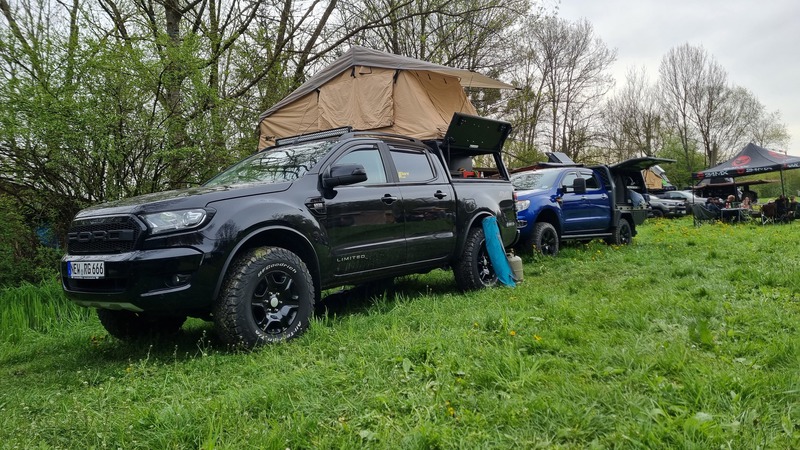 Wir verbringen einen tollen Nachmittag, die Zeit vergeht wie im Flug. Mittlerweile sind doch schon einige da, Max und Tommy von unseren Stoapfälzern trudeln am späten Nachmittag auch ein, genauso wie Daniel mit seinem Ranger – welche Überraschung, keiner wusste, dass er kommt! Einen schönen Platz findet jeder, auch unser Team von Hilux Vibes ist mittlerweile mit Marei, Christian und Marcel vollständig. Marcel hat T-Shirts, Tassen und Aufkleber im Gepäck. Gegen Abend gibt´s lecker Grillfleisch, und da es nach Sonnenuntergang doch kühl wird, wärmt uns ein Feuer. Die Runde ist groß, aber frieren braucht keiner!