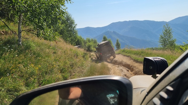 Die Nacht war wirklich ruhig. Nach dem Frühstück nehmen wir die letzten 15 km in Angriff hinunter ins Tal. Und die haben es noch mal in sich! Sehr ausgewaschen mit tiefen Furchen und Löchern, da ist Konzentration beim Fahren angesagt! So brauchen wir auch länger als gedacht, aber alle unsere Pickups meistern die Piste gut. Hätte es geregnet, wäre dieser Teil der Piste unfahrbar und zu gefährlich gewesen und wir hätten die Ausweichroute nehmen müssen. Irgendwann erreichen wir die Talsohle und damit die Teerstraße und fahren durch schöne Dörfer. Sonntag ist für die Rumänien Grill- und Campingtag, überall am Fluss entlang wird gegrillt und gechillt oder gebadet. Markus findet eine Abkürzung zur Transfagarasan. Die Teerstraße endet, es breiter Schotterweg beginnt in einem Tal entlang. Irgendwann müssen wir links abbiegen und es beginnt eine Offroadpiste, die sich bestimmt 30 km hinzieht und echt teils derb ist! Mehr als Schneckentempo ist oft nicht möglich. Wer hätte das gedacht? Manchmal muss man gar nicht lange suchen, Zeit haben wir uns so natürlich nicht gespart, aber dafür einen tollen Offroadtrip erfahren dürfen!