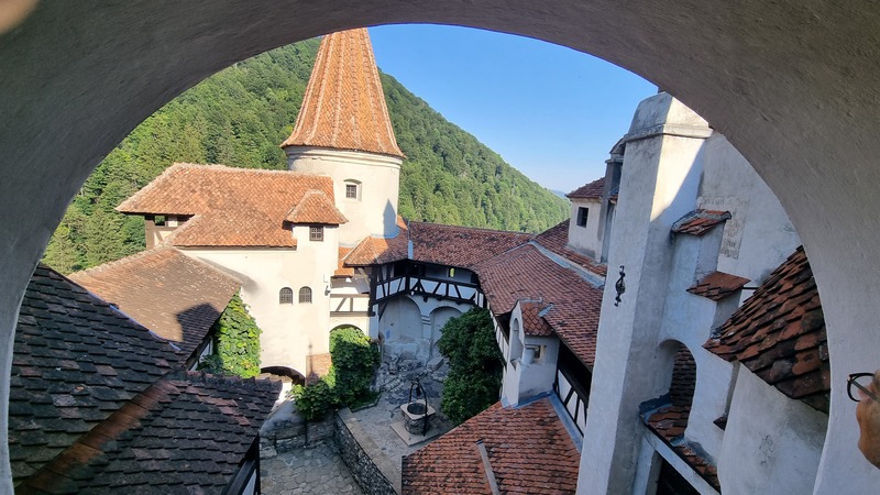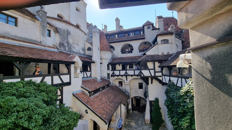 Da die Burg täglich sehr viele Besucher anlockt, stehen wir etwas früher auf, laufen die ca. 2 km zur Burg und sind tatsächlich einer der ersten, die am Eingang stehen. So kann man sich die wunderschön verwinkelte Burg in Ruhe ansehen, bevor die Menschenmassen einfallen! Eigentlich ist nicht erwiesen, dass der Fürst Vlad Tepes, genannt der Pfähler, wirklich auf der Burg war. Er hatte seine Burg im Flachland der Walachei, eine Burg auf einem Hügel macht aber natürlich mehr Eindruck für finstere Horror-Geschichten. So wurde halt Bran die Burg Draculas, und die passt wirklich sehr gut. Eigentlich wohnte hier König Ferdinand und seine Frau von Rumänien – die meisten kommen nur wegen Dracula hierher. Was man natürlich auch an den unzähligen Souvenir-Ständen sehen kann, auch wir können uns dem Bann des blutrünstigen Fürsten nicht entziehen und kaufen ein Shirt, einen Sticker, etwas Holzware und ein Fell. Nach einer Stärkung mit einem Craft-Beer aus Brasov laufen wir zurück zum Campingplatz und kommen dabei ganz schön ins Schwitzen. Den Rest des Tages verbringen wir auf dem Platz, tut auch mal gut, so ein Ruhetag!