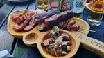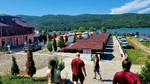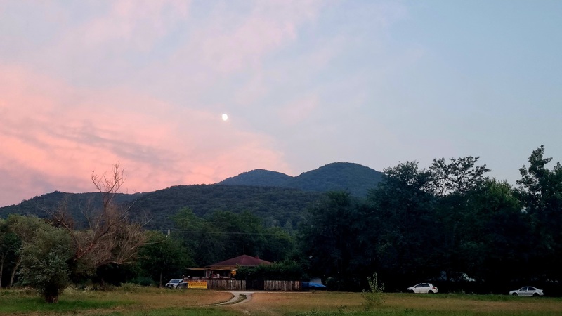 Am Ende des Lacul Vidraru überquert man mit dem Fahrzeug die Staumauer, dann geht es steil hinunter ins Tal. Unten erreichen wir den kleinen Platz „Dracula Camp“, den wir ansteuern. Nach dem Check-In des recht neuen Platzes bauen wir auf und gehen dann lecker essen im dortigen Restaurant, das nur ca. 300 m vom Platz entfernt ist. Grillplatten, Polenta, einheimisches Bier, super lecker!