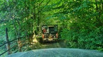 Am Montag fahren wir unsere erste Offroadstrecke, immer in Richtung Black Sheep Camp. Markus entdeckt auf einer Bergstrecke einen Wegweiser zu einer Höhle, die wollen wir uns auf jeden Fall anschauen! Sie ist auch im Roadbook beschrieben, also biegen wir rechts in einen schlechten Schotterweg ein und fahren ein paar Kilometer bis zu einer Gaststätte. Dort stehen auch Wohnwagen, es wird gecampt, sehr schöner Platz. Im Leben würde ich unserem Wohnwagen diese Strecke nicht zumuten und frage mich, ob die eingeflogen wurden! Wir lassen die 4x4 stehen und folgen den Wegweisern einen steilen Berg hinab und durch einen Bach, bis wir an der Höhle sind. Dort gurgelt das Wasser unterirdisch weiter, wir sind völlig alleine unterwegs. Mit der Taschenlampe schauen wir uns die nicht sehr große Höhle an und wandern dann zurück zur Hütte, nicht ohne was zu trinken und ein Mici-Menu zu essen! Irgendwie war es zwar nicht die Höhle aus dem Roadbook, aber egal. War auf jeden Fall eine schöne kleine Wanderung! Auf der Piste durch den Wald fängt es an zu regnen, ein Gewitter ist im Anmarsch. Schwierig ist der Weg nicht, aber (durch)geschüttelt statt gerührt ist das Thema hier.