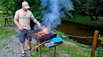 Heute wollen wir ins nicht weit entfernte Hunedoara, eine größere Stadt in der Nähe des Stausees. Dort steht eine bekannte Burg, die schon als Vorlage für Filme diente. Eine toll restaurierte Festung, die auf jeden Fall einen Besuch wert ist! Den Besuch der Stadt kann man sich sparen, außer einer kleinen Fußgängerzone ist da nicht viel – und ehrlich gesagt, bei 34 Grad hat man auch keine große Lust auf Wanderungen. Am Aufgang zur Burg befindet sich ein gutes Restaurant, wo wir auch was essen können. Die Forelle mit Polenta mit einer 200%igen Knoblaufsauce spüren Markus und ich noch Stunden danach. Nach der Stadt fahren wir zurück zum Stausee und finden einige Kilometer vom letzten Platz entfernt eine richtig tolle private Location. Geoff und Hayley, die zwei Besitzer aus Neuseeland, heißen uns herzlich Willkommen in ihrem kleinen Reich. Wir dürfen uns auf die Wiese stellen, es gibt saubere Sanitäranlagen, wir dürfen die Küche benutzen. Hayley bringt uns Melonen und einen selbstgemachten Kuchen. Die beiden sind vor 20 Jahren aus Neuseeland hierher ausgewandert, wir erfahren viel über Rumänien, das Leben hier und sitzen abends mit Geoff zusammen. Offizielle Werbung gibt es für den Platz nicht, aber wer mal dort in der Gegend ist, sollte unbedingt eine Nacht bei den beiden bleiben: (nzgateway@yahoo.com).