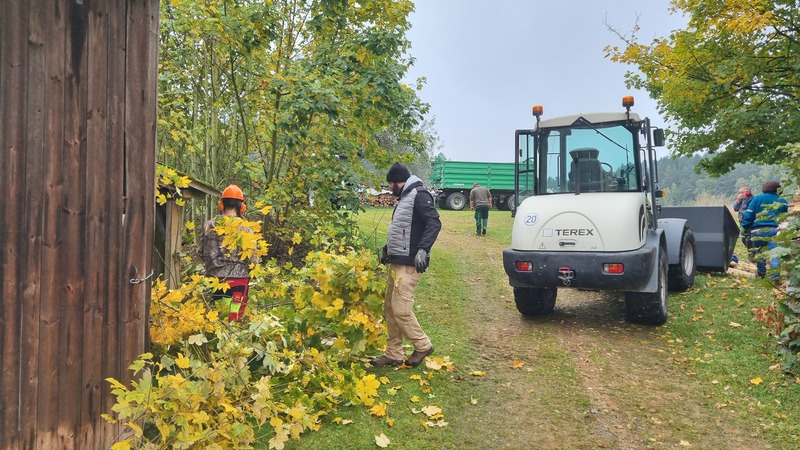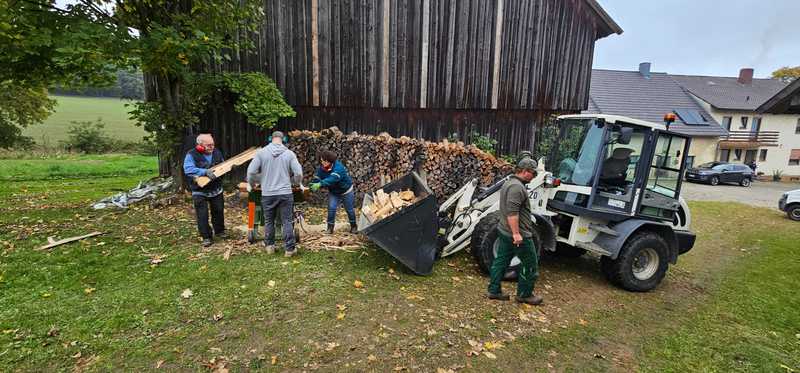 Es war mal wieder eine tolle Holzaktion. Wir haben unser Pensum geschafft, Dank der vielen freiwilligen Helfer konnten wir sogar noch die eine oder andere Arbeit erledigen, für die sonst nie Zeit ist. Finde ich auch nach so langer Zeit klasse, dass die Gemeinschaft zusammenhält und so viele mitmachen! So kann der Winter kommen, muss keiner frieren. Ich sag einfach mal im Namen der Ranch-Gemeinschaft ein fettes Dankeschön an alle Stoapfälzer und -innen fürs fleißige arbeiten, an Renate und Justin für das leckere Mittagessen, an unsere Mädels für das sehr gute Gulasch, und natürlich an Christoph, der uns mit seinem Traktor und Lader eine Menge Arbeit erspart hat! (Jürgen Krauß)