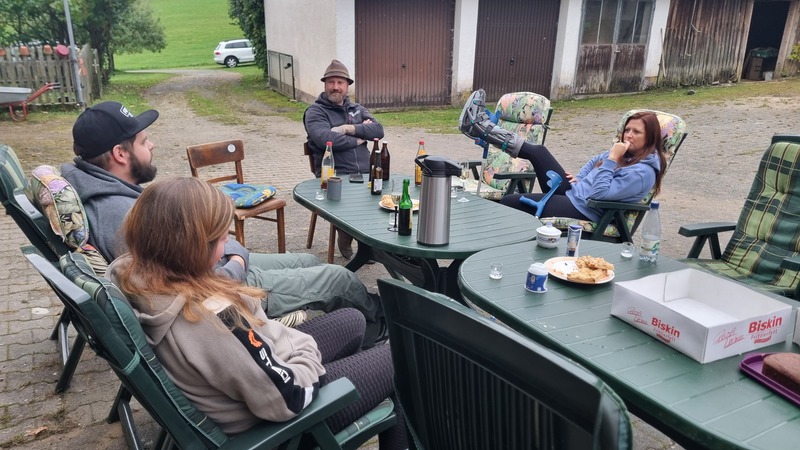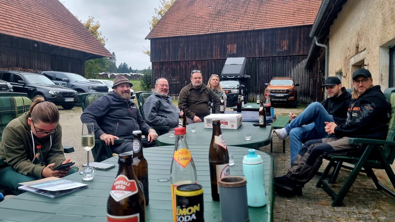 Als es kühler wurde, sind wir dann nach drinnen gewechselt. Das Gulasch köchelte schon am Ofen, irgendwann hieß es Essen fassen. Es war genug für alle da, und wir verbrachten einen lustigen und schönen Abend in unserem Saustall. Heute Morgen dann noch ein gemeinsames Frühstück, bevor sich Basti und Steffi auf den langen Heimweg in den Norden machten und auch der Rest sich verabschiedete.