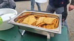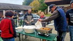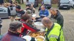Renate hatte für ein leckeres Mittagessen gesorgt, es gab heiße Schnitzel mit Kartoffelsalat und Pommes und Salat dazu! Wirklich klasse, wir konnten sogar draußen essen, so kalt war es nicht. Nach dem Essen hieß es weitermachen, es war noch eine Menge Holz zu sägen und anzuschlichten! Aber mit so vielen Helfern kein Problem, so dass wir Nachmittag fertig waren. Mit 22 Leuten geht da schon was vorwärts, das wäre zu dritt oder viert nicht zu schaffen.