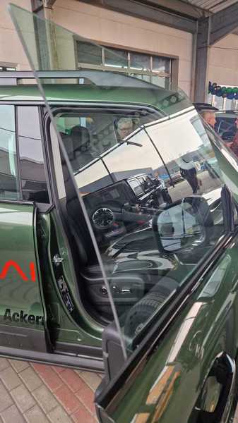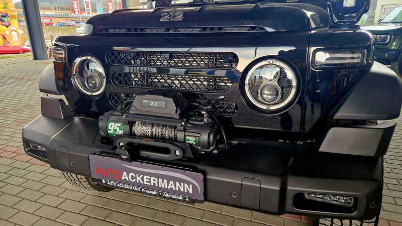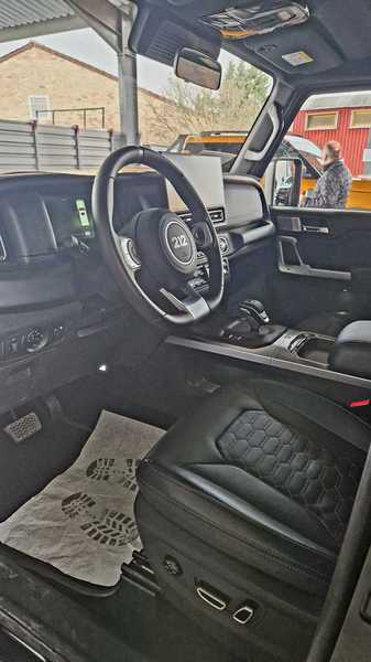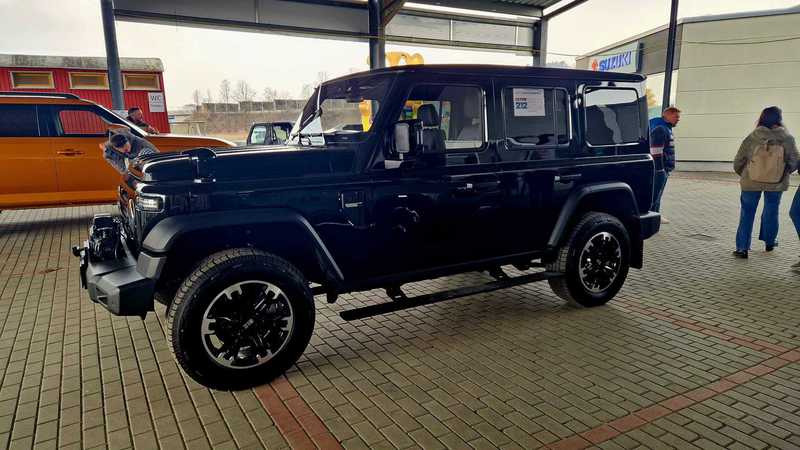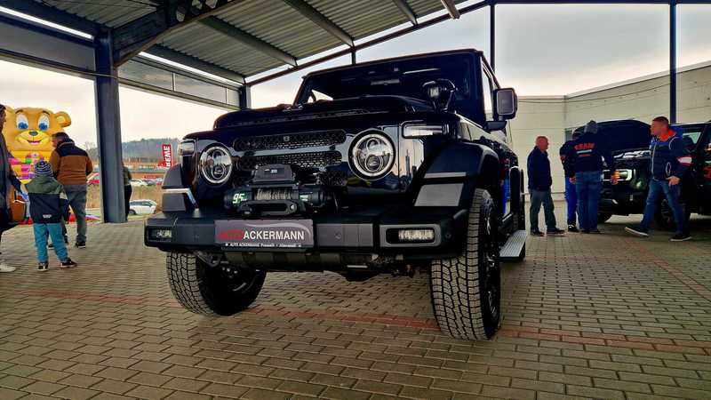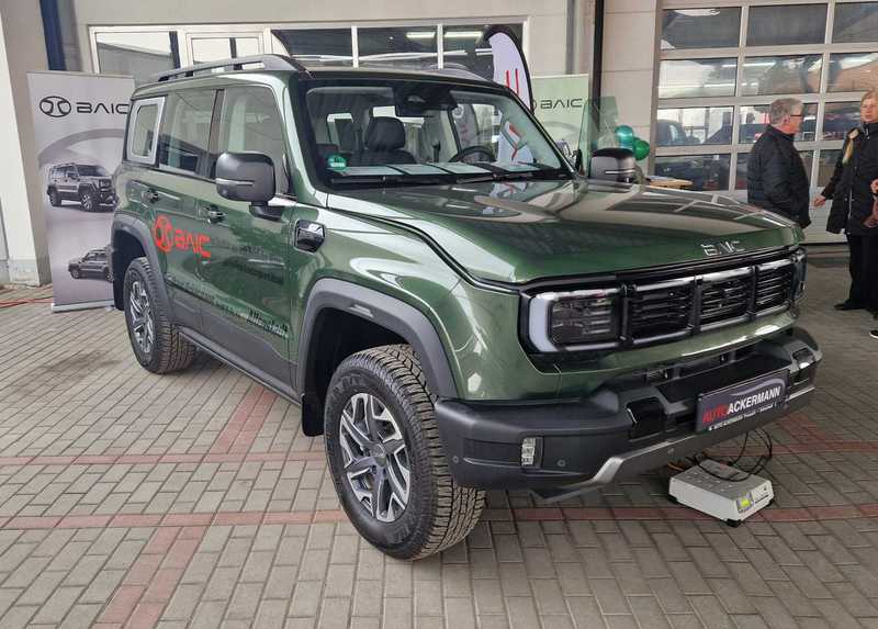 Neugierig waren wir natürlich auf den BAW 212. Der wurde ja schon im Internet groß angekündigt und kommt in Kleinserie mit einem 2.0 Liter Diesel und 160 PS zu uns. Auf der Fahrzeugpräsentation hatte der Generalimporteur einen Benziner mitgebracht, der jedoch (noch) keine Zulassung bei uns hat. Was nicht ist, kann ja eventuell noch werden. Wir hatten Zeit, uns den BAW 212 genauer anzuschauen. Optisch ein Geländewagen der alten Schule, der von vorne ein wenig an längst vergangene Generationen des Nissan Patrol oder Jeeps erinnert, nur halt im letzten Fall nicht mit senkrechten, sondern waagrecht stehenden Kühlerrippen. Von der Seite betrachtet wirkt er wie ein Mix aus Wrangler, Mercedes G, Landrover New Defender oder Ineos Grenadier. Auch das Heck klassisch: Steil und gerade abfallend mit außenliegendem Reservereifen. So eine Optik kommt an, dazu der unschlagbare Preis von 40000 Euro. Eine Komplettkonservierung ist sinnvoll und erforderlich und wird für 1200 Euro angeboten, sollte man auf jeden Fall dazunehmen!