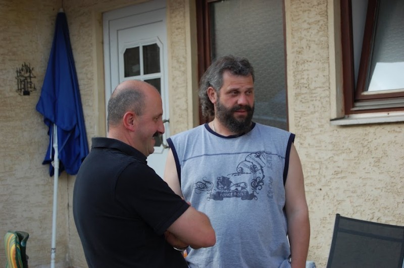 München von einem US-Car-Treffen. Es wurde langsam voll im Hof, unser Grillmeister Tom übernahm wieder die Grillschicht. Die Mädels bereiteten inzwischen die Salate und alles andere vor, und schon