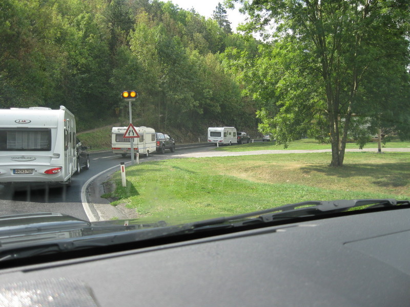 Wir sind schon am Abend vor der Tour auf der Ranch und haben genug Zeit, den Wohnwagen einzuräumen, anzuhängen und dann am Samstagmorgen zu starten. Über München, wo wir merken, daß wir nicht die einzigen sind, die so spät noch losfahren und erst mal im Stau stehen, geht es am Chiemsee vorbei zum Walserberg an der österreichischen Grenze. Dort treffen wir auf André und kurz darauf auch auf Klaus und Sandra und Stony und Rosi. Der Treffpunkt klappt ja schon mal perfekt, denke ich! Mit drei Hiluxen und einem Mercedes ML, drei Wohnwagen und einem Dachzelt fahren wir südlich an Villach vorbei und durch den Karawankentunnel bis zum Campingplatz Šobec bei Bled in Slowenien.