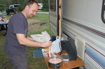 Nachdem wir ja gestern so viele Kilometer gefahren sind, gönnen wir uns einen Ruhetag und machen mal – nix. Also wir – André sucht Caches, sogar unter Wasser! Sachen gibt´s…