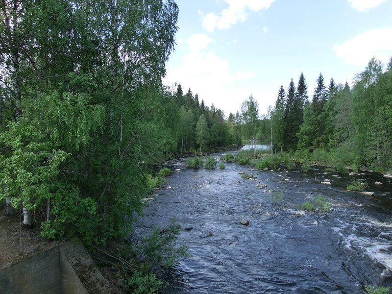 Nach soviel Stadtrummel wurde es nun aber echt Zeit, sich in die Einsamkeit zu verpieseln, also fuhren wir zunächst entlang der Küste Richtung russische Grenze und weiter in den finnischen Teil Kareliens. Diese Ecke des Landes ist ein Traum und wir waren sicherlich nicht zum letzten Mal dort. Schotterpisten ohne Ende, Wälder, Flüsse und Seen so weit das Auge reicht. Man fährt dort viele Kilometer durch die Wälder und begegnet keiner Menschenseele. Dort haben wir ein paar sehr schöne Tage verbracht und das Wetter spielte ebenfalls mit. Die Temperaturen stiegen während unseren Aufenthaltes auf 30°C. Allerdings gab es dort so kleine Viecher, von denen ich erst annahm, daß es kleine Fliegen wären, aber die Mistviecher haben gestochen was das Zeug hält. Natürlich wieder nur mich... Sandra hatte keinen einzigen Stich. Keine Ahnung, was die ausgerechnet mit meinem Arthroseverseuchten Blut wollen, sollen sie dran verrecken.