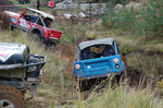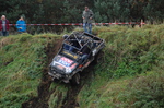 Mittlerweile kommen doch auch einige Zuschauer, die sich das nicht entgehen lassen möchten und zu sehen gibt’s eine Menge! G. Bergler, der Geländebesitzer und selbst 4x4-Fan, läßt sich auch mal kurz blicken, bevor wir weitergehen, um auch im hinteren Teil des Geländes alles mitzukriegen! Es geht rauf und runter, keine Hügelchen, sondern ausgewachsene Steilhänge. Über Betonteile und weiter durch Schlammlöcher. Wer die meisten Runden schafft, gewinnt…