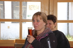 Wir sitzen noch so lange draußen, bis es zu kalt wird und flüchten dann in Andi und Maikes neues Vorzelt, wo wir alle Platz finden. Dank Heizstrahler braucht auch keiner zu frieren. Die Nacht wird kalt, dafür erwartet uns am Samstag strahlender Sonnenschein und Windstille, wir frühstücken im Freien. Um 10 Uhr beginnt auch schon unser Bier-Schnupperkurs, was für ein Streß! Eineinhalb Stunden hält uns eine Braumeisterin einen recht kurzweiligen und durchaus interessanten Vortrag mit vielen Fakten zur Entstehungsgeschichte des Bieres, natürlich wird auch das eine oder andere mal probiert! Als der Vortrag zu Ende ist, sind auch schon Gerhard und Sonja, die uns auf einen Tagesausflug besuchen, sowie Udo mit seinem Hilux da. Wir können den ganzen Nachmittag gemütlich in der Sonne sitzen, die Gesprächsthemen gehen nicht aus. Holger besucht uns auch mal auf einen Kaffee, er war grad mit der Harley auf Tour und schaute auch mal vorbei.