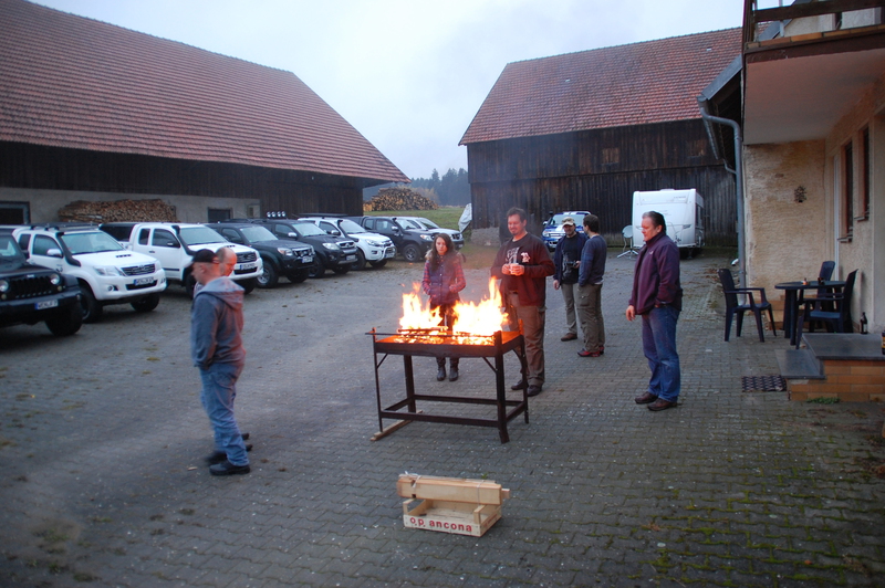 Am Samstag dichter Nebel, der sich leider auch den ganzen Tag nicht verzog. Dafür aber für November ungewöhnlich warme Temperaturen! Gegen Mittag heizte ich den Saustall an, am Nachmittag und gegen Abend waren dann alle da: einige von unseren Stoapfälzern, Jürgen und Tobias mit dem Chevy, Udo mit dem Hilux aus der Stuttgarter Gegend, Ralph und Henriette mit dem Ranger aus Plauen. Der Grill wurde angeheizt und wir konnnten noch mal leckere Sachen auflegen! Drin wars schon fast ein wenig zu warm, die Bar gut besuc ht, so daß wir einen lustigen Abend und eine kurze Nacht hatten.