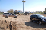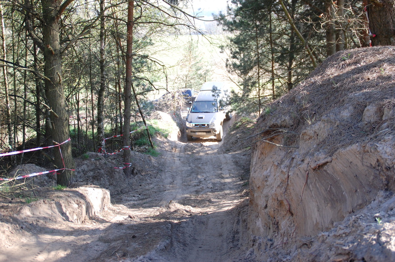 Mario und seine Frau besuchen uns auf einen Tagesausflug mit ihrem Ranger, auch ein paar andere sind noch angekommen, u. a. der neue Club-Präsident des dänischen Offroad-Clubs SORD mit seinem Discovery. Um 14 Uhr starten wir ins Gelände zur letzten Aufgabe, ein mit Absperrband abgesteckter Parcours ist auf Zeit zu befahren. Wäre jetzt nicht so kompliziert, wenn man ihn nicht mit verbundenen Augen befahren müßte! Da ist der Beifahrer gefragt, Klaus lotst mich als ersten durch die Sektion. Die Bestzeit schaffen wir nicht, aber dabeisein ist ja alles. Ganz schön komisches Gefühl, so mit verbundenen Augen durchs Gelände zu fahren, man sieht nicht mal, wie das Lenkrad steht! Schade, daß es bei den letzten anfängt zu regnen, so daß wir in die Autos flüchten müssen!