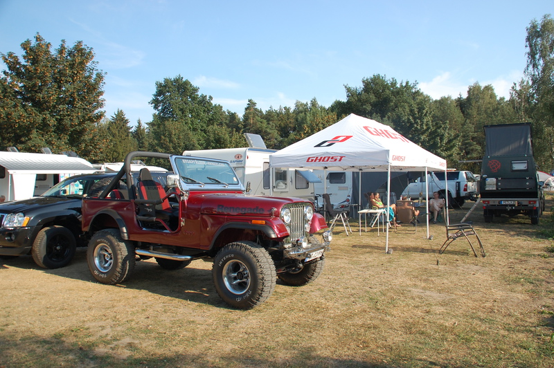 Der offizielle Anreisetag ist der Freitag, es werden die Getränke geliefert, eine tolle Sache, schön kaltes Bier zu haben, ohne den eigenen Kühlschrank vollzustopfen! Man trifft eine Menge alter Bekannter und auch einige, die zum ersten Mal dabei sind. Wir fahren Nachmittag eine Runde ins Gelände, Daniel, Mario, Tom und Martin schließen sich spontan an. Durch die lange Trockenheit ist das Gelände gut zu meistern, wir finden auch für unsere Pickups schöne Strecken, die wir zwar schon irgendwie alle kennen, die aber trotzdem wieder Spaß machen! Zurück im Camp sind schon wieder ein paar neue angekommen, Elke verteilt die diesjährigen Treffen-Shirts und kommt zum ersten mal mi t einem D-Max, Werner bringt auch ein allseits bekanntes Auto mit. Klaus und Micha sind da, und gegen Abend ist die Partymeile eröffnet. Mirko und Melanie kommen mit Wohnwagen und Lux, genauso wie Holger und Katja. Fast wird es ein wenig eng! Es wird wohl für manche recht spät oder früh, jedenfalls habe ich einige Gesichter schon frischer gesehen! Aber wir sind ja nicht zum Spaß hier…