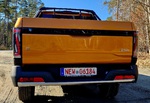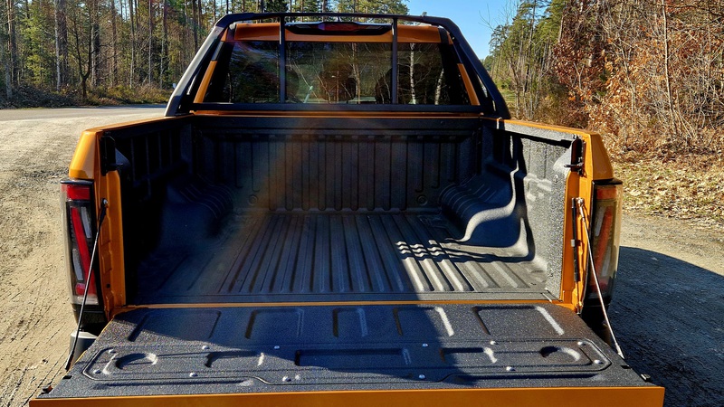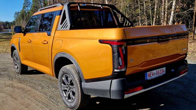 Die Zuladung beträgt ca. 700 kg. Könnte bei einem Pickup dieser Größe etwas mehr sein, ist aber mit Sicherheit auch mit der Einzelradaufhängung geschuldet. Ein Ford Ranger Raptor darf weniger zuladen! Die Anhängelast steht momentan noch nicht fest, da die Homologation noch nicht abgeschlossen ist. Ich denke, so um die 3 – 3,5 Tonnen wären sicherlich möglich.