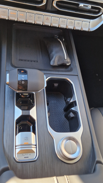 Öffnet man die Heckklappe, sieht man einen Dämpfer, der sie mit wenig Kraftaufwand öffnet und auch wieder schließt. Links ist ein Staufach angebracht, auch ein nettes Detail! Reifen und Felgen in 18“ sind nicht riesig, Umbau-Fans würden sich wohl etwas größere Reifen wünschen! Auch da ist Raum für den Zubehörhandel. Ohne jetzt die Bedienungsanleitung studiert zu haben, hat er wohl einen Knopf für manuelles Einschalten der DPF-Regeneration, jedenfalls ist das Symbol dasselbe wie in meinem Hilux. Nicht schlecht! Nett ist auch das Staufach unter dem Automatik-Wählhebel, so was sieht man selten. Vor dem Wählhebel ein Ablageplatz für Smartphones inclusive induktiver Ladestation.
