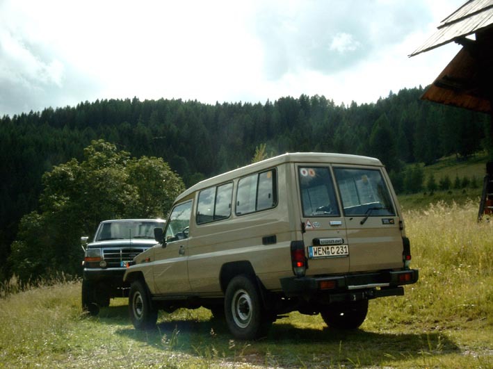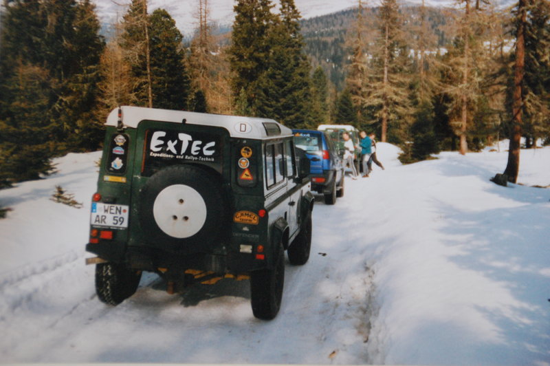 Durch einen Vereinskameraden, der durch seinen Vater gute Beziehungen zu einer Almhütte in Kärnten hatte, haben wir einige Touren dorthin unternommen. Eine offroadige Anfahrt und die spartanisch ausgestattete Alm auf 1800 m haben uns dort ein paar wunderschöne Urlaube verbringen lassen. Und weil das im Sommer jeder kann, haben wir auch zweimal eine Woche im Winter dort verbracht! Zuerst mit den Landrovern so weit gefahren, bis nichts mehr ging im Schnee und es zu gefährlich wurde, dann mit Schneeschuhen und Ausrüstung rauf zur Hütte. Die Einsamkeit dort oben im Winter war ein einmaliges Erlebnis, im Umkreis von 8 km war außer uns niemand. Als die Hütte nur noch privat genutzt wurde, haben wir noch ein paar andere Hütten gemietet und waren jedes Jahr einmal in Kärnten oder der Steiermark.