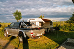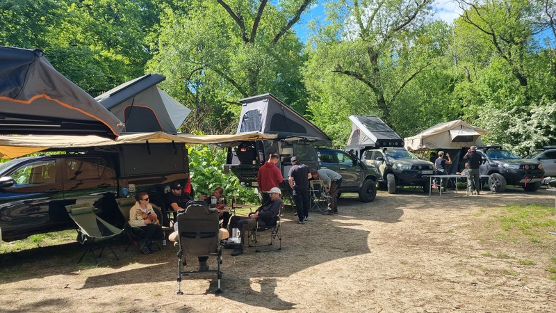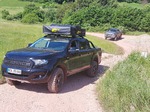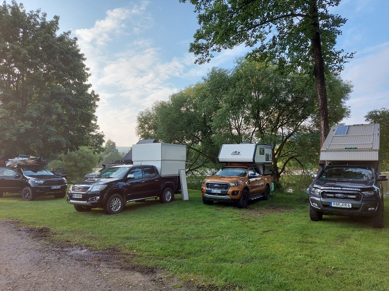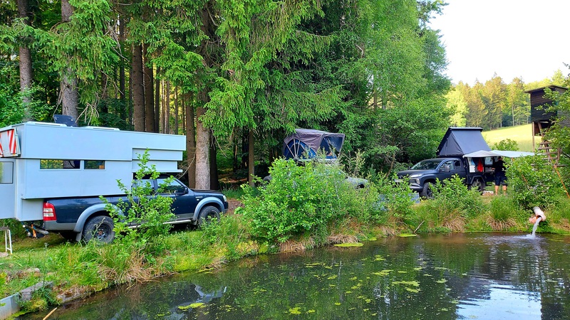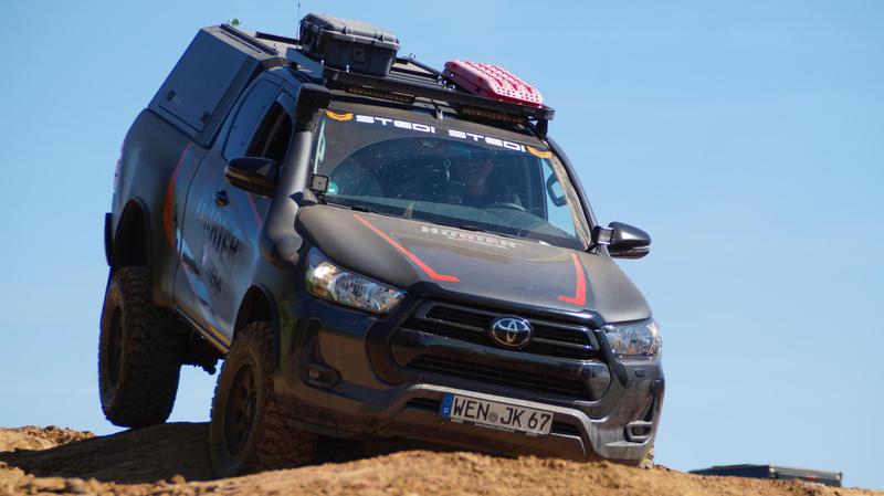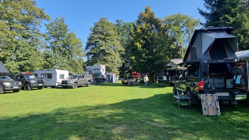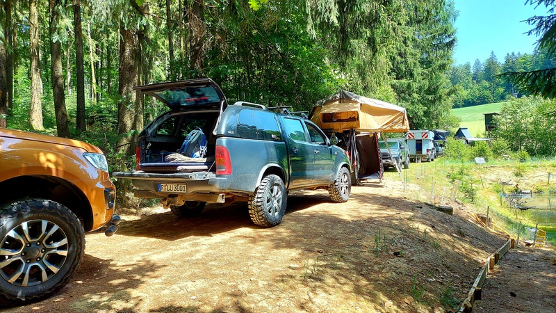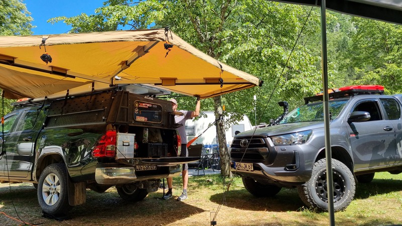 Natürlich gehört 4x4 und Camping auch irgendwie zusammen. Ob jemand da lieber mit Wohnwagen unterwegs ist oder eben auf 4x4-Touren im Dachzelt schläft oder eine Kabine spazieren fährt, bleibt jedem selbst überlassen. Wenn wir komfortabler unterwegs sein wollen und ich nicht unterm Hardtop meines Hilux schlafe, dann hängen wir den Wohnwagen dran, suchen uns einen Campingplatz und fahren von dort aus Touren. Da mehrere bei uns mit Wohnwagen und 4x4 unterwegs sind, ist man selten alleine unterwegs.