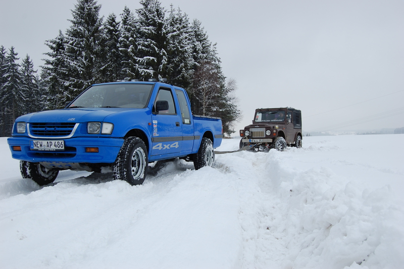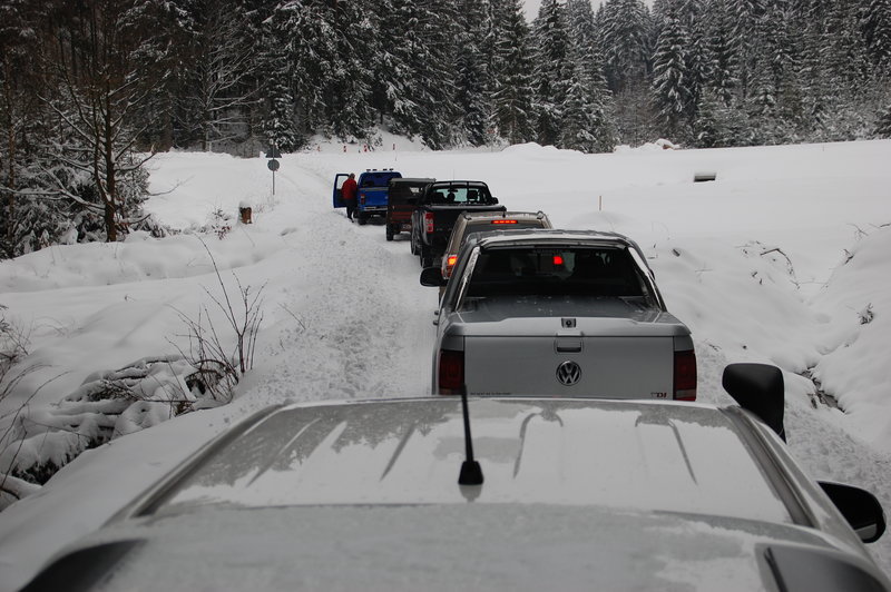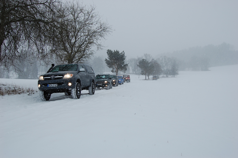 Die Winter vor 20 Jahren waren ja noch anders als die heute. Da war Schnee noch Thema, bei uns in der Oberpfalz auch gern mal etwas mehr. Das haben wir immer recht kurzfristig für unsere Schneetouren genutzt, die wir jahrelang mindestens einmal im Winter gefahren sind. Treffpunkt ausgemacht und dann mit immer mindestens 10 Fahrzeugen über zugeschneite Wege und Flurbereinigungsstraßen gefahren. Je nach Schneehöhe waren das mehr oder weniger anstrengende Touren durch die nördliche Oberpfalz. Starke Schneeverwehungen haben öfter Allrad und Untersetzung notwendig gemacht, manchmal auch Winden oder Schaufeln. Ausklingen lassen haben wir eine Schneetour immer in einer guten Kneipe oder einem Café.